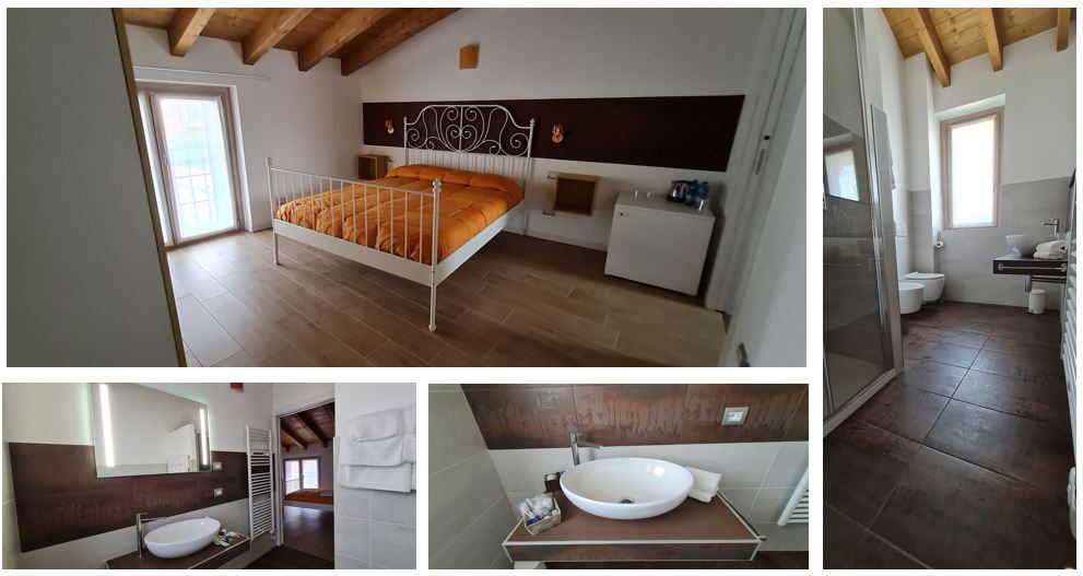Posta al piano primo della struttura, un’ampia camera di 20 mq completa di tutti i confort: bagno privato finestrato con bidet e ampia doccia con soffione relax, comodo letto matrimoniale, climatizzatore, frigobar, bollitore con ampia selezione di infusi, WiFi gratuito, Smart TV con schermo piatto.