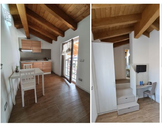 Posta al piano primo della struttura, questa soluzione offre un’ampia stanza di 25 mq con bagno privato ed annessa cucina abitabile da 10 mq.La camera è completa di tutti i confort: bagno privato finestrato con bidet e ampia doccia con soffione relax, comodo letto matrimoniale, climatizzatore, frigobar, bollitore con ampia selezione di infusi, WiFi gratuito, Smart TV con schermo piatto. La cucina è attrezzata con tutto il necessario per cucinare e munita di piastra ad induzione, cappa, lavello e frigorifero e ampio tavolo con sedie.